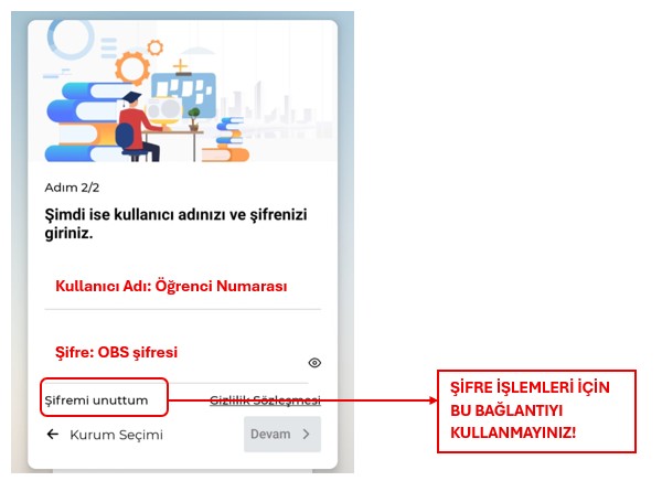 1- Uygulama ekranında yer alan “Şifremi unuttum” bağlantısını kullanmayınız.